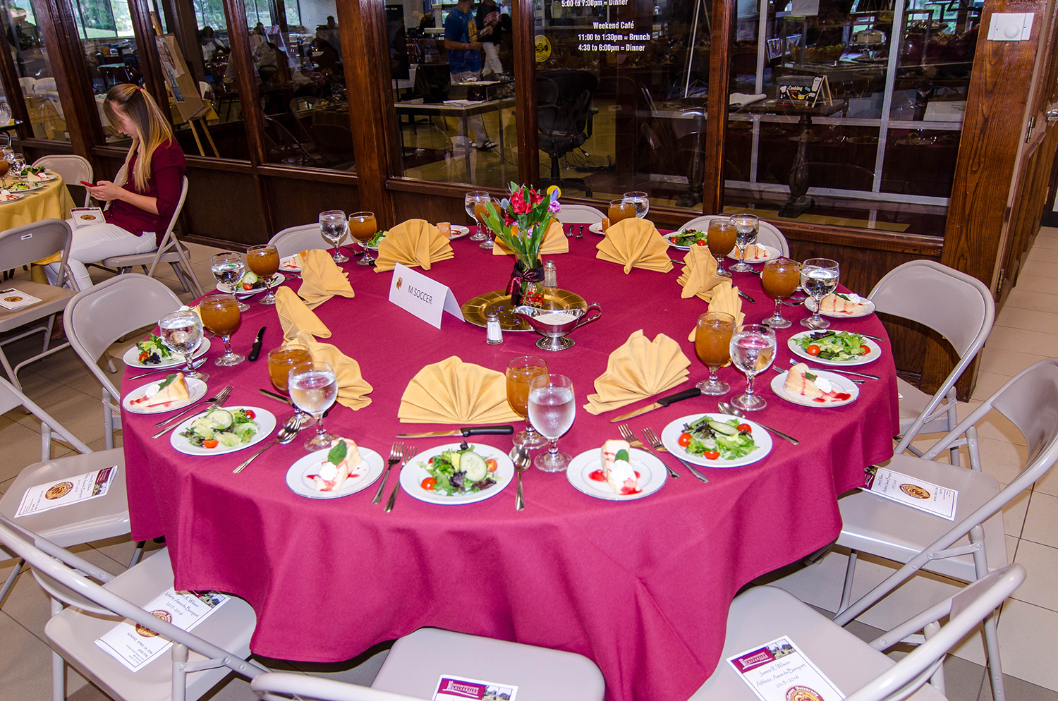 Table cloths, not provided by the University, are needed for all tables, especially wood grain tables. |